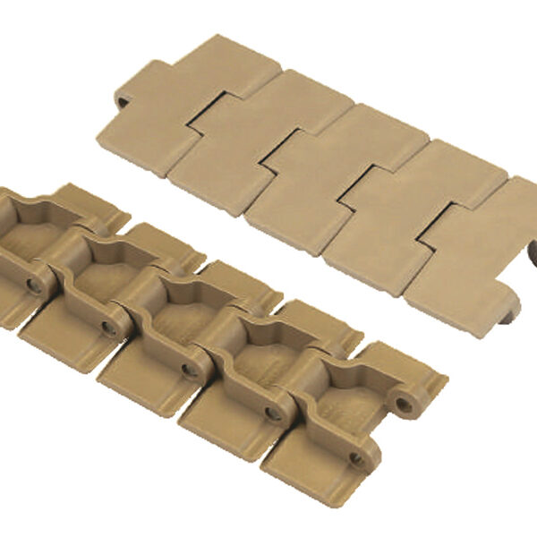 A série 820 é o modelo mais usado das correntes de plataforma reta plástica, sendo fabricada em várias larguras padrões que vai de 2.1/2” (63,5mm) a 7.1/2” (190,5mm).