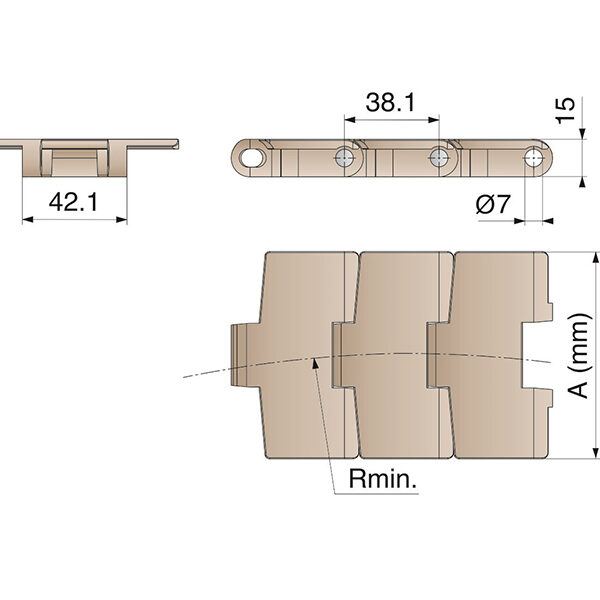 Corrente de Plataforma Plástica Curva Série 880 – TAB RA