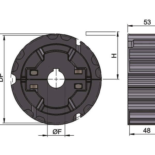 Este modelo é fabricado em POM, podendo ser fabricado em outros materiais sobe consulta.