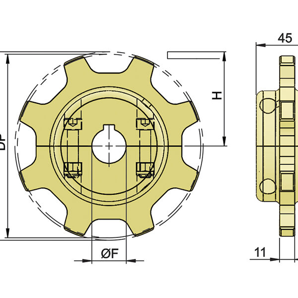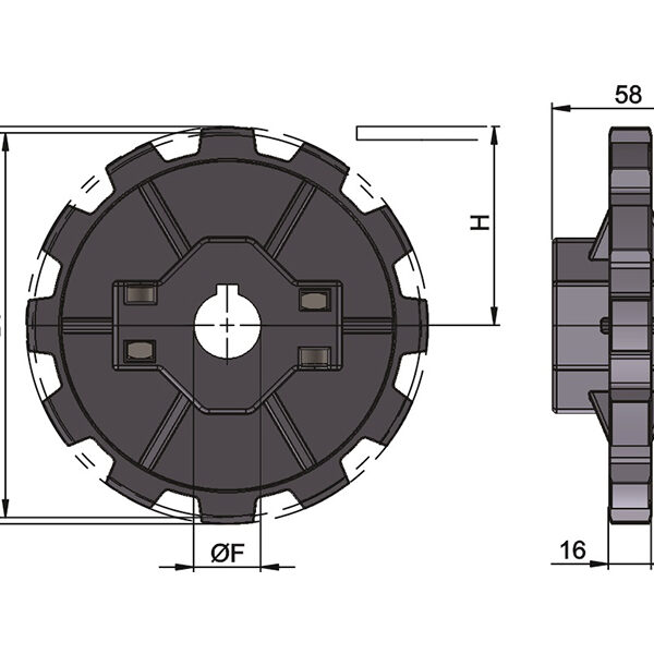 Engrenagem para Corrente Plástica 882 Usinada Bipartida