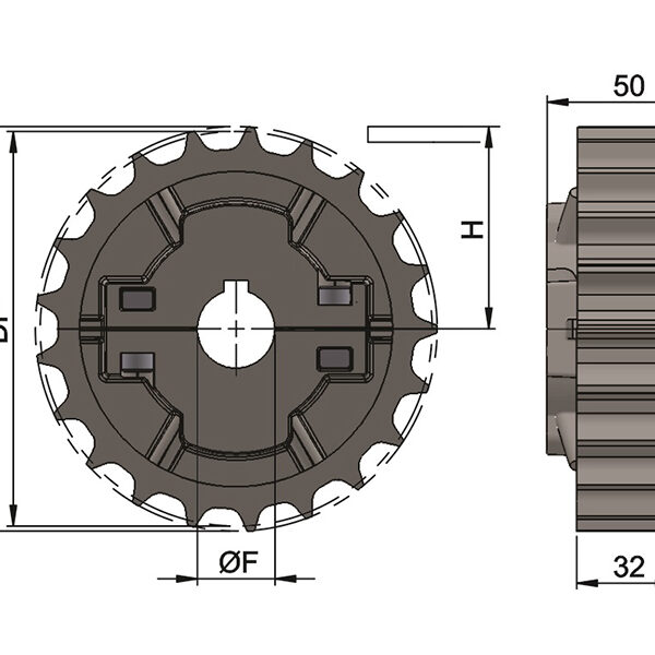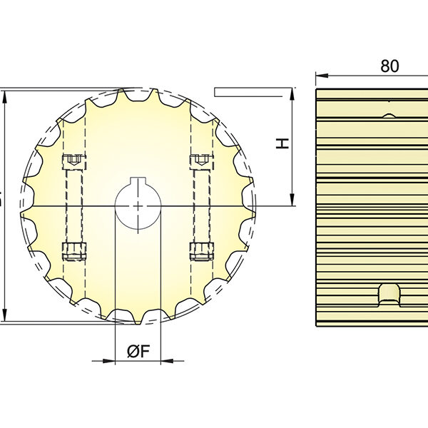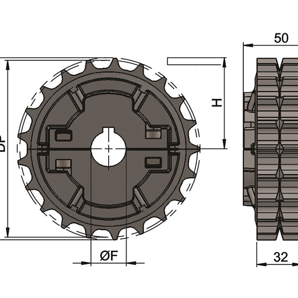 Engrenagem para Corrente Plástica 820 Usinada Bipartida