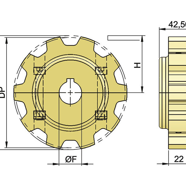 As Engrenagens para corrente modelo 820 podem ser injetadas ou usinadas e inteiriças ou bipartidas. Os modelos fabricados estão abaixo.