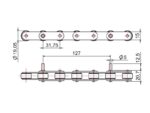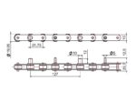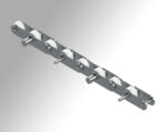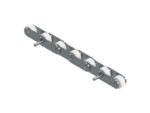 Corrente de pino estendido H70 modelo C2050SSA de passo de 1.¼” e roletes de deslizamento de diâmetro de ¾” são fornecido dois modelos, com pino estendido de 5mm de passo de 5” e com pino estendido de 5mm e pino estendido de 10mm intercalados de passo de 5”. Este último para girar a caneca quando necessário.