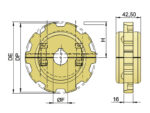 Engrenagens usinadas em nylon, com 9, 10, 11 e 12 dentes, diâmetro do furo de 25 a 40mm. São bipartidas com fixação por parafusos. Tem códigos para modelos com e sem chaveta